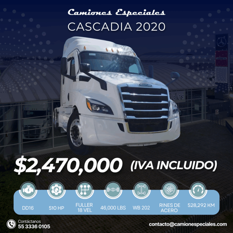 En Camiones Especiales, somos tu distribuidor autorizado de vehículos seminuevos Freightliner en México, ofreciendo tractocamiones Cascadia, Freightliner M2, FL 360 y más, listos para trabajar en tu negocio. Todos nuestros camiones seminuevos certificados han pasado por un riguroso proceso de inspección mecánica y estética, asegurando que recibas un vehículo de carga confiable, con el mejor rendimiento y al precio más competitivo.